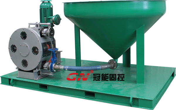鉆屑輸送裝置由錐形鉆屑接收漏斗和鉆屑輸送泵以及控制裝置構成,能夠接收固控設備用螺旋輸送機輸送過來的鉆屑和鉆井廢棄物。鉆屑輸送泵由電機驅動,通過真空作用吸取鉆屑,輸送給鉆屑干燥篩或者鉆屑甩干機處理。鉆屑輸送泵具備較強的自吸能力,專門用于輸送高粘度高固含量耐磨耐酸耐腐介質,且無密封結構輸出壓力高。