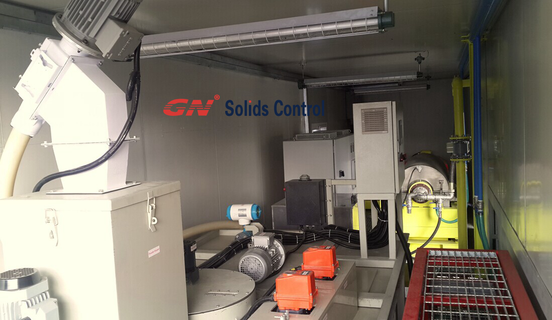 GNLW553臥螺式大處理離心機(jī)用來做為主要脫水設(shè)備,對泥漿中的超細(xì)顆粒進(jìn)行絮凝后分離。利用兩臺螺桿泵分別對離心機(jī)輸送泥漿和絮凝藥品,兩者在進(jìn)漿管中進(jìn)行混合絮凝。離心機(jī)分離完的泥餅可以進(jìn)行填埋或者其他無害化處理。干凈的水則被收集起來留作他用。